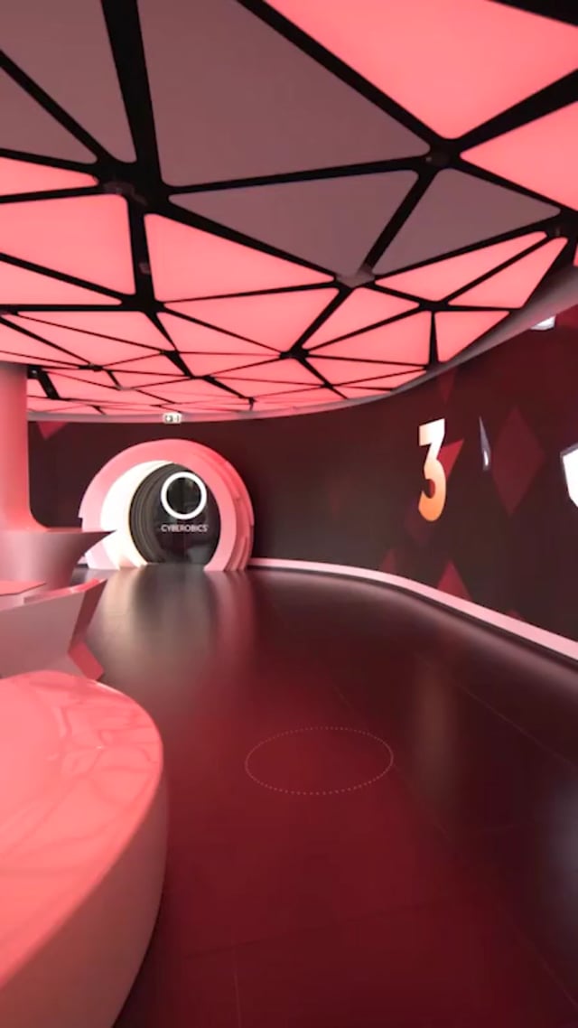 Auf der 22 m breiten, hochauflösenden LED-Wand laufen Workouts die speziell hierfür an den schönsten Orten der Welt wie dem Grand Canyon oder New Yorker Roof-Tops aufgenommen wurden. Die Wand ist konkav gebogen und liefert mit über 8,7 Millionen Pixeln so klare Bilder, dass der Besucher komplett in das Trainingserlebnis eintauchen kann. In der Eingangshalle begrüßt eine 8 m hohe LED-Wand den Besucher. Der rundum mit Bildschirmen bestückte Fahrstuhl, macht die Fahrt in das erste Obergeschoss zu einem Erlebnis für sich, und stimmt auf die „World of cyberobics“ ein.